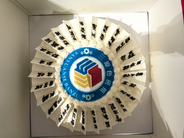 學(xué)習(xí)結(jié)束后,就進(jìn)入了第二個班組活動——回顧往昔,慶?!叭比龤q生日。磨工班組的成員們齊聲喊出“磨工班組三歲啦!”,有人趕忙去拿蛋糕,有人忙著搬桌子,還有人拆蛋糕包裝。組員彭高和高強小心翼翼地拿著蛋糕轉(zhuǎn)來轉(zhuǎn)去,認(rèn)真找著合適的角度,想把這開心的一刻拍下來留作紀(jì)念。作為這個大家庭的一員,每個人都在用心為這場慶?;顒映隽Γ浞终宫F(xiàn)出團隊的凝聚力 。