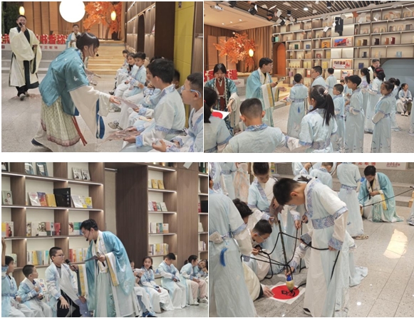 家長(zhǎng)陪伴孩子們完成《洛神賦》知識(shí)問(wèn)答,在古雅的場(chǎng)景中構(gòu)建起文化對(duì)話的橋梁。此次“書(shū)香+親子”模式讓抽象的文化符號(hào)轉(zhuǎn)化為可感知、可參與的成長(zhǎng)養(yǎng)分,當(dāng)孩子們捧著《洛神賦》文創(chuàng)禮物離場(chǎng)時(shí),傳統(tǒng)文化的種子已隨水拓畫(huà)的漣漪、毛筆字的墨香悄然扎根。
