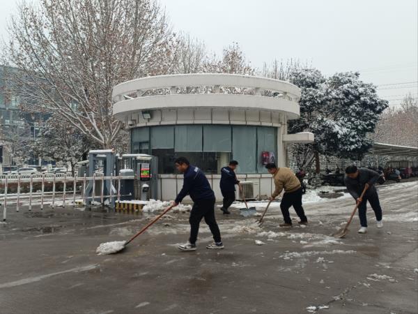 經(jīng)過(guò)簡(jiǎn)單的分工部署,大家便拿著勞動(dòng)工具投入到了掃雪除冰工作中,揮舞著鐵锨、掃帚,干得熱火朝天,不亦樂(lè)乎,忙碌的身影構(gòu)成了一道亮麗的風(fēng)景線。盡管室外溫度很低,但大家勞動(dòng)的熱情和團(tuán)結(jié)的力量讓這個(gè)冬日變得格外溫暖。半個(gè)多小時(shí)的奮戰(zhàn),銀白的園區(qū)里處處閃耀著“黨員紅”,最終鏟出了一條洋溢著溫情的通暢道路。
