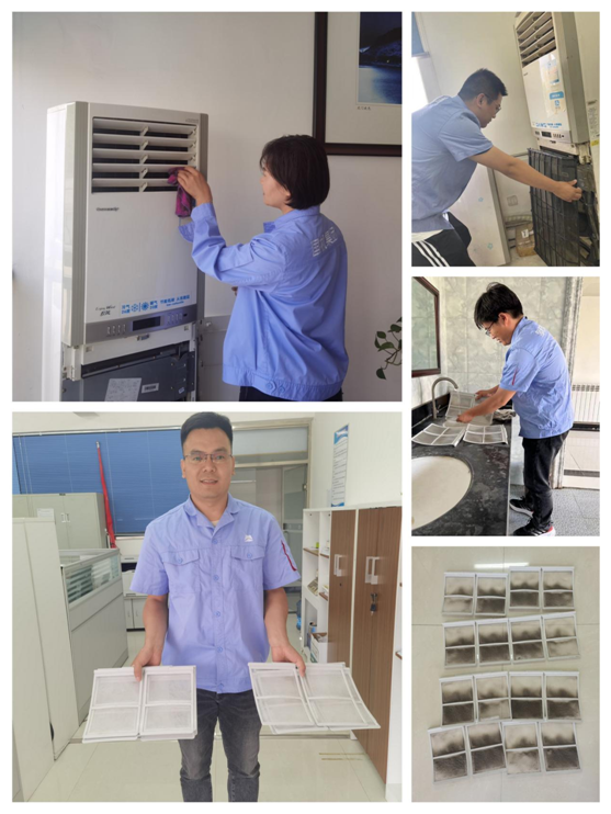 在活動現(xiàn)場,志愿者們分工明確,配合密切,拆卸空調外殼、清洗空調濾網(wǎng)、擦拭空調外機,經過一下午有條不紊的清洗活動,辦公室和會議室的空調從內到外煥然一新?!皼]想到空調濾網(wǎng)這么臟”“太好了,終于能放心開空調了”,看著沖洗出的灰塵污漬,員工們對志愿者助人為樂、無私奉獻的精神紛紛表示感謝和贊揚。