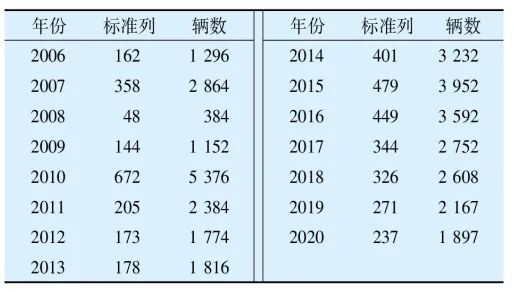 動車組技術來源和進口軸承的生產廠家見表3,各型動車組軸箱軸承基本信息見表3,至2020年,全國鐵路擁有動車組數(shù)量3918標準組,共31344輛。