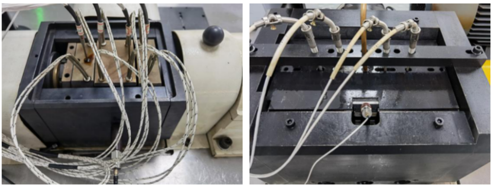 試驗(yàn)過程中,通過轉(zhuǎn)速、載荷、溫度、振動(dòng)、電流傳感器進(jìn)行監(jiān)測(cè)相關(guān)參數(shù),傳輸?shù)奖O(jiān)測(cè)軟件上匯總顯示,需要保溫測(cè)試的工況需要增加相應(yīng)的加熱器(油脂潤(rùn)滑軸承增加“加熱條”到試驗(yàn)單元進(jìn)行加熱,油潤(rùn)滑試驗(yàn)通過加熱潤(rùn)滑油以達(dá)到目的)。