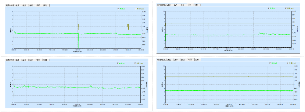 對(duì)整個(gè)試驗(yàn)工裝的振動(dòng)情況進(jìn)行記錄,對(duì)每一時(shí)刻的振動(dòng)值進(jìn)行記錄,在整個(gè)測(cè)試中的振動(dòng)趨勢(shì)變化可以全程跟蹤軸承的狀態(tài),是否出現(xiàn)異常以及異常的趨勢(shì)變化,分析軸承在測(cè)試中哪一階段開始出現(xiàn)異常,是否出現(xiàn)打滑等狀況;